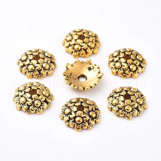 Tibetan Style Alloy Bead Caps, Lead Free & Cadmium Free, Flower, Antique Silver and Golden