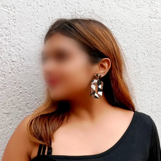 Black and white dangle earrings | light weight earrings | hand-painted earrings for women