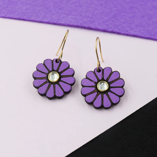 Wooden earrings | floral design embellished with kundan stones | hand-painted wooden light weight earrings