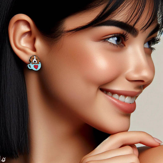 dog earrings | puppy earrings | wooden stud earrings | dog in a cup wooden stud earrings | for women and kids
