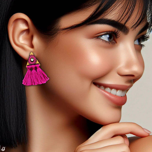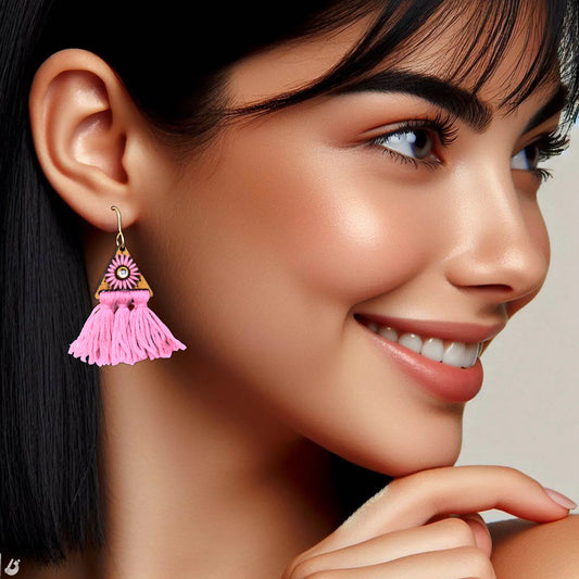 Tassel Earrings | Triangular tassel earrings | wooden floral earrings | Stud Type Tassel Earrings for women