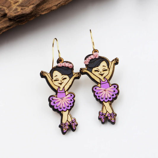 ballerina earrings | wooden earrings | dangle earrings for women | embroidery earrings