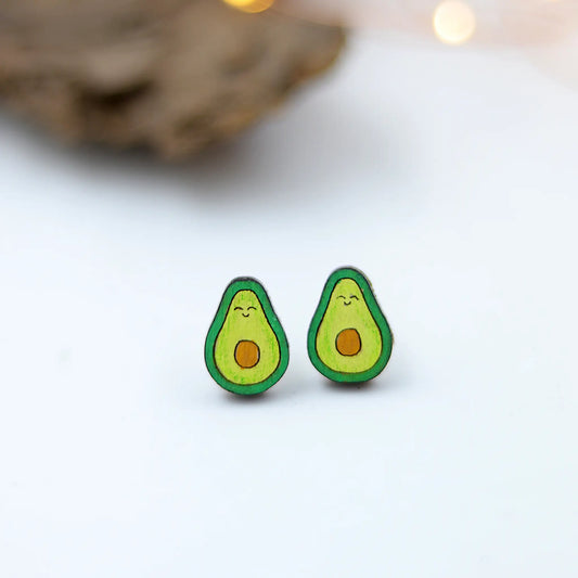 avocado earrings | wooden stud earrings | hand-painted stud earrings | for women and kids