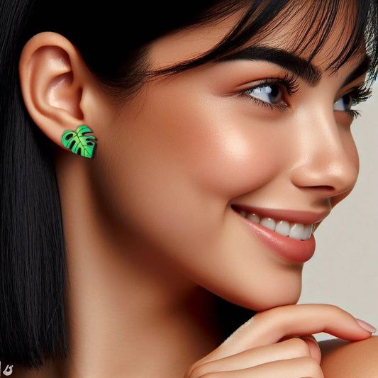 monstera leaf earrings | Green leaf wooden stud earrings | hand-painted stud earrings | for women and kids