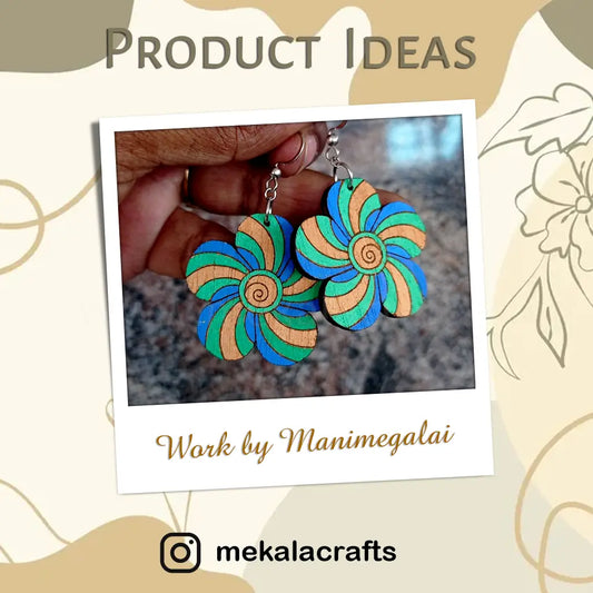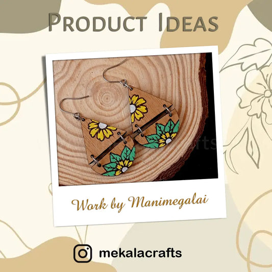 Daisy Floral Engraved Dangler Earring Laser-Cut Wooden Base (Set of 2)