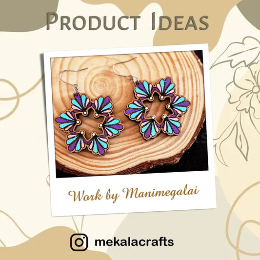 Mandala Engraved Earring Laser-Cut Wooden Base
