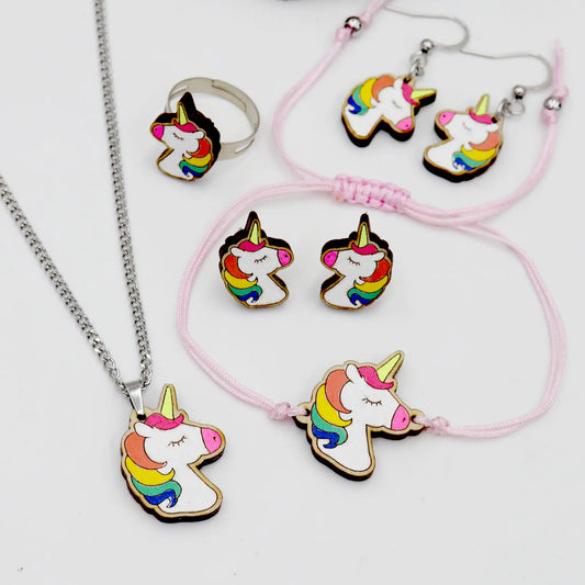 Whimsical Dreams – Hand-Painted Wooden Unicorn Jewelry Set | Unicorn Earrings