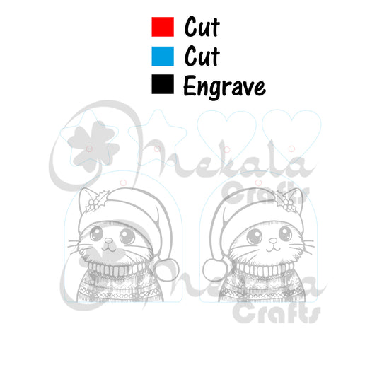 christmas laser cut earring file | cat santa earrings | svg pdf and dxf | lightburn compatible