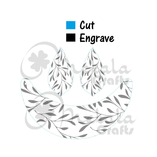 Laser Engraved Wooden Jewelry Set – Leaf Pattern Necklace & Earrings, Natural Wood Statement Jewelry, Eco Friendly Gift - Laser cut files