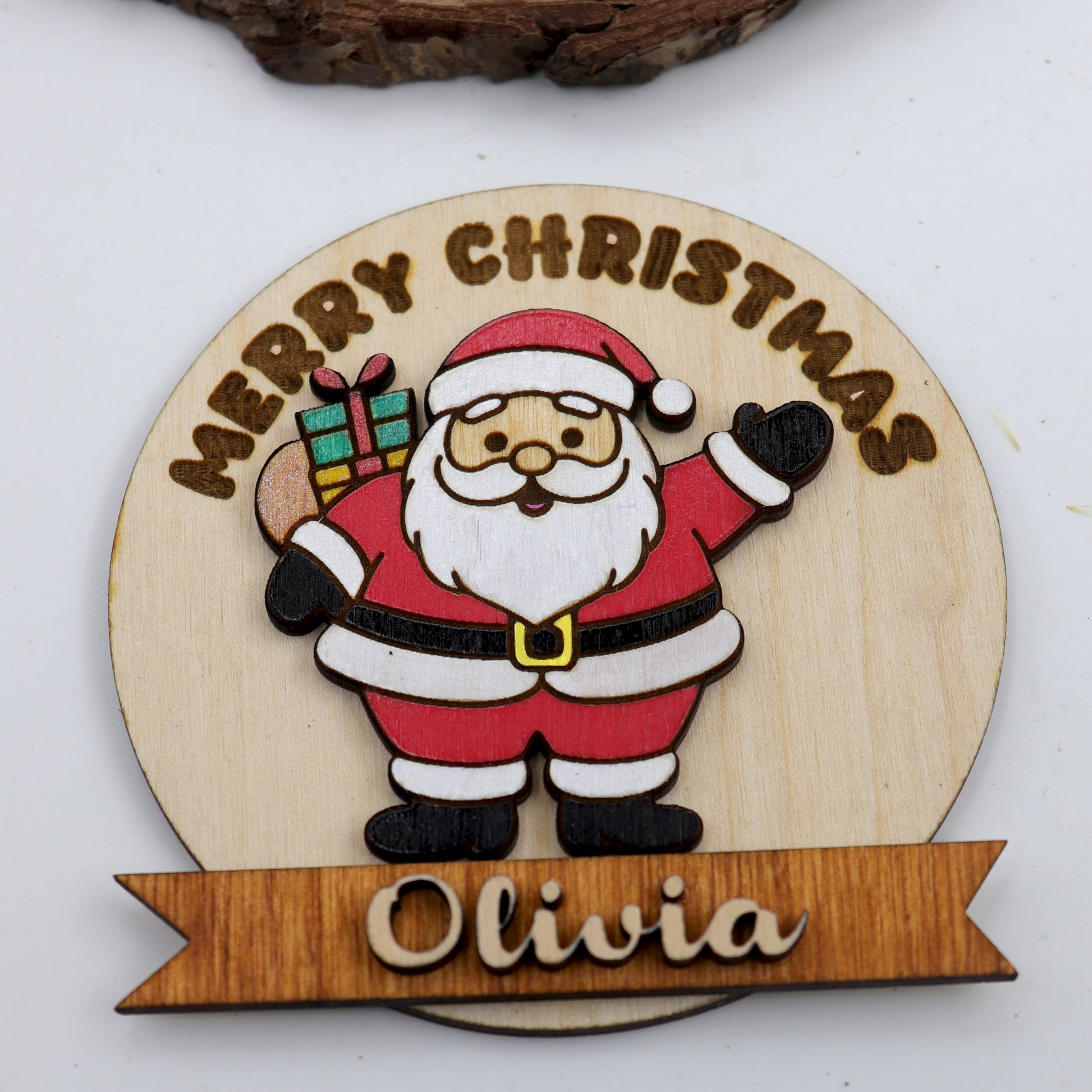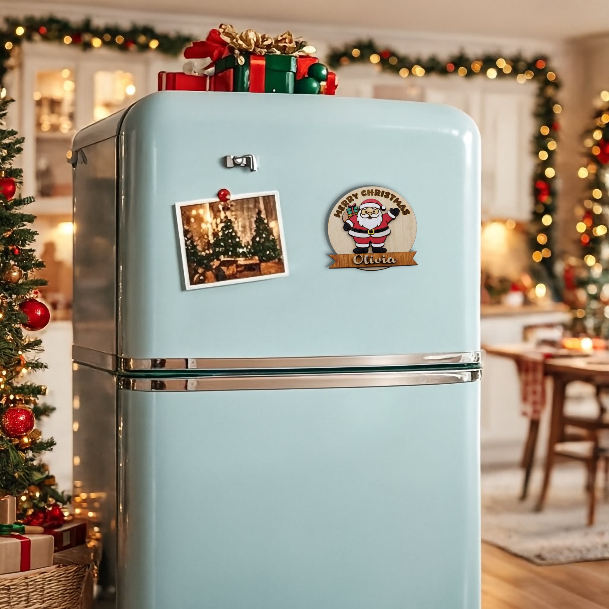 Personalized Wooden Santa Magnet – Custom Name Hand-Painted Christmas Fridge Decor