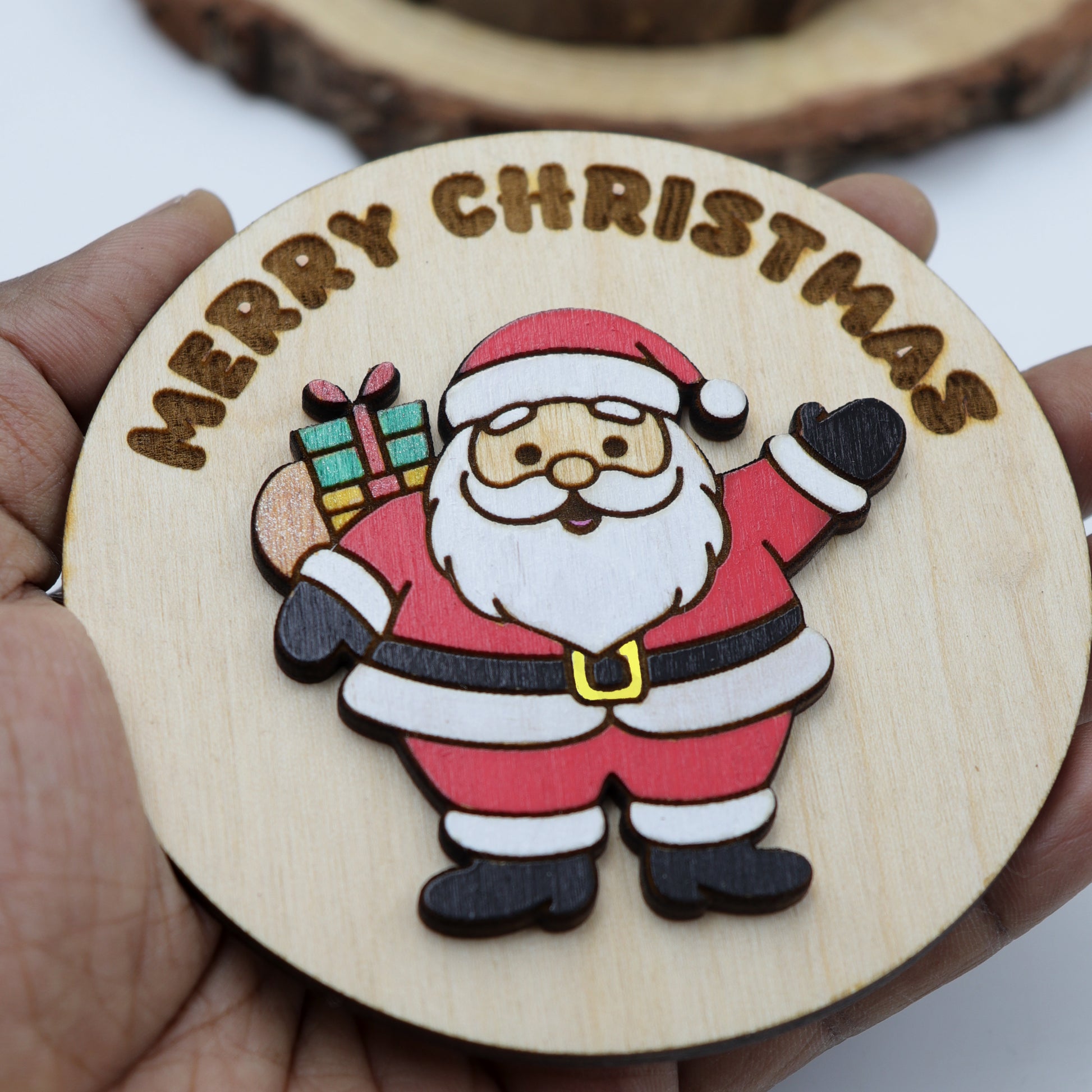 Make your holiday season extra special with this charming Personalized Hand-Painted Wooden Santa Magnet! Crafted from natural wood and brought to life with vibrant hand-painted details, this festive magnet features a cheerful Santa waving beneath the engraved “Merry Christmas” message.
